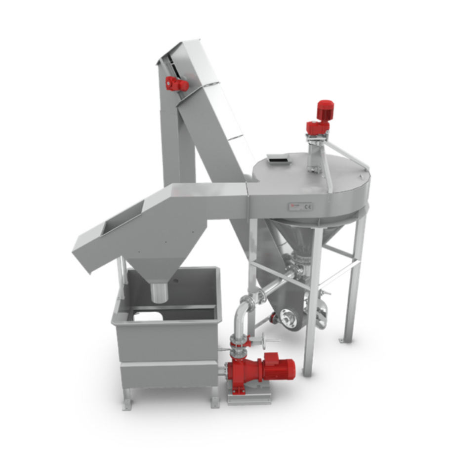 Among the many distinguishing features of the cyclone destoner are a reliable stainless-steel pump, a 5-mm thick plate steel and a polyurethane layer that functions as wear-resistant material.